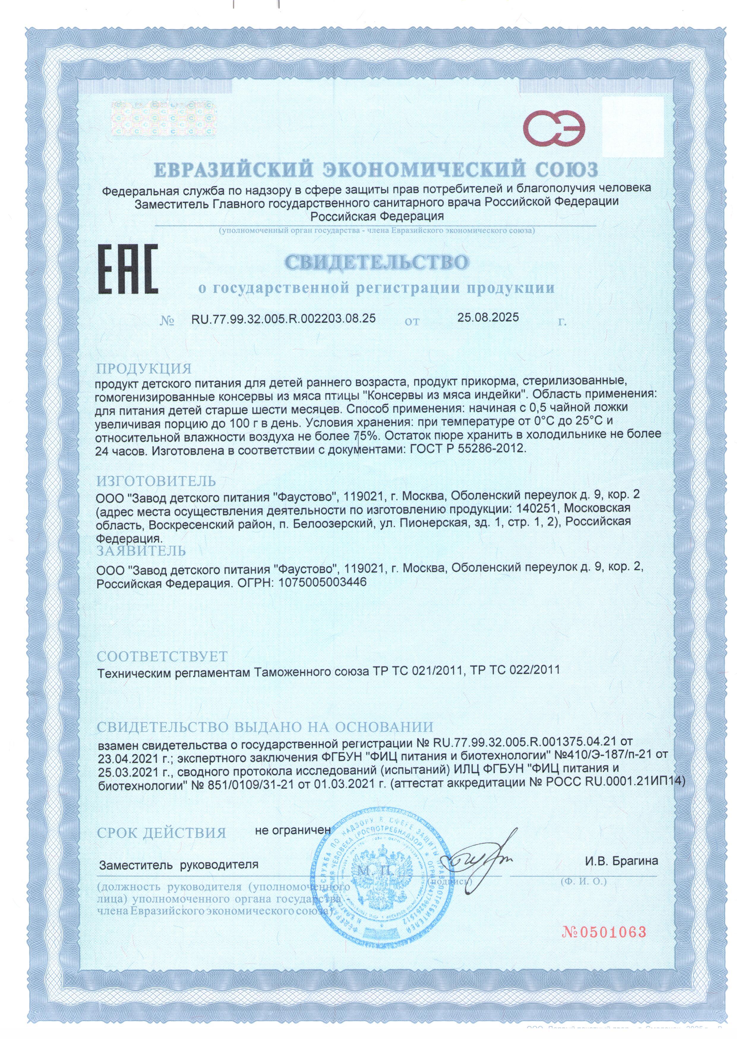 Пюре мясное гомогенизированное стерилизованное для питания детей раннего возраста