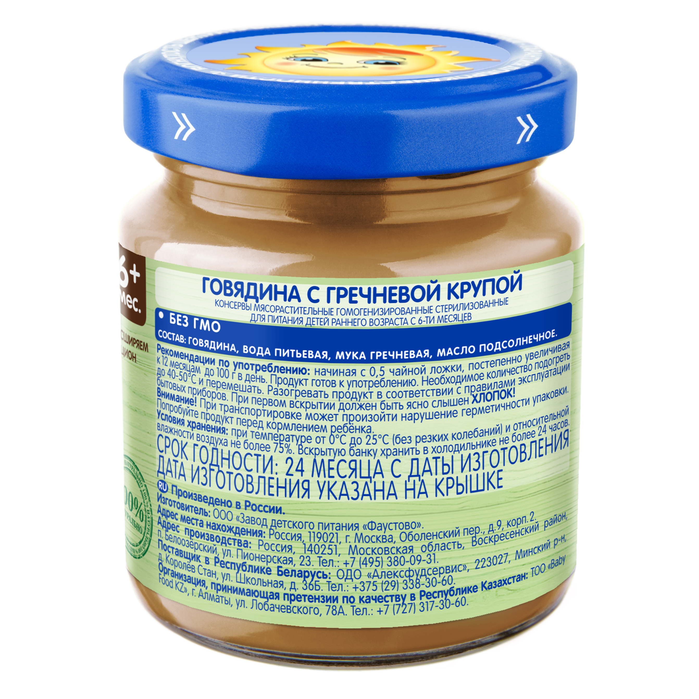 Состав: говядина,вода питьевая, мука гречневая,масло подсолнечное.