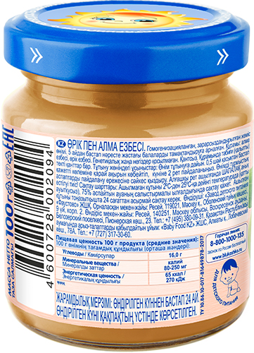 Пюре из яблок и абрикосов. Содержит сахара природного (естественного) происхождения.