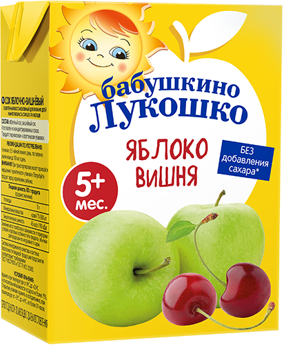 Яблочный сок, вишнёвый сок. Изготовлен из концентрированных соков. Содержит сахара природного (естественного) происхождения.